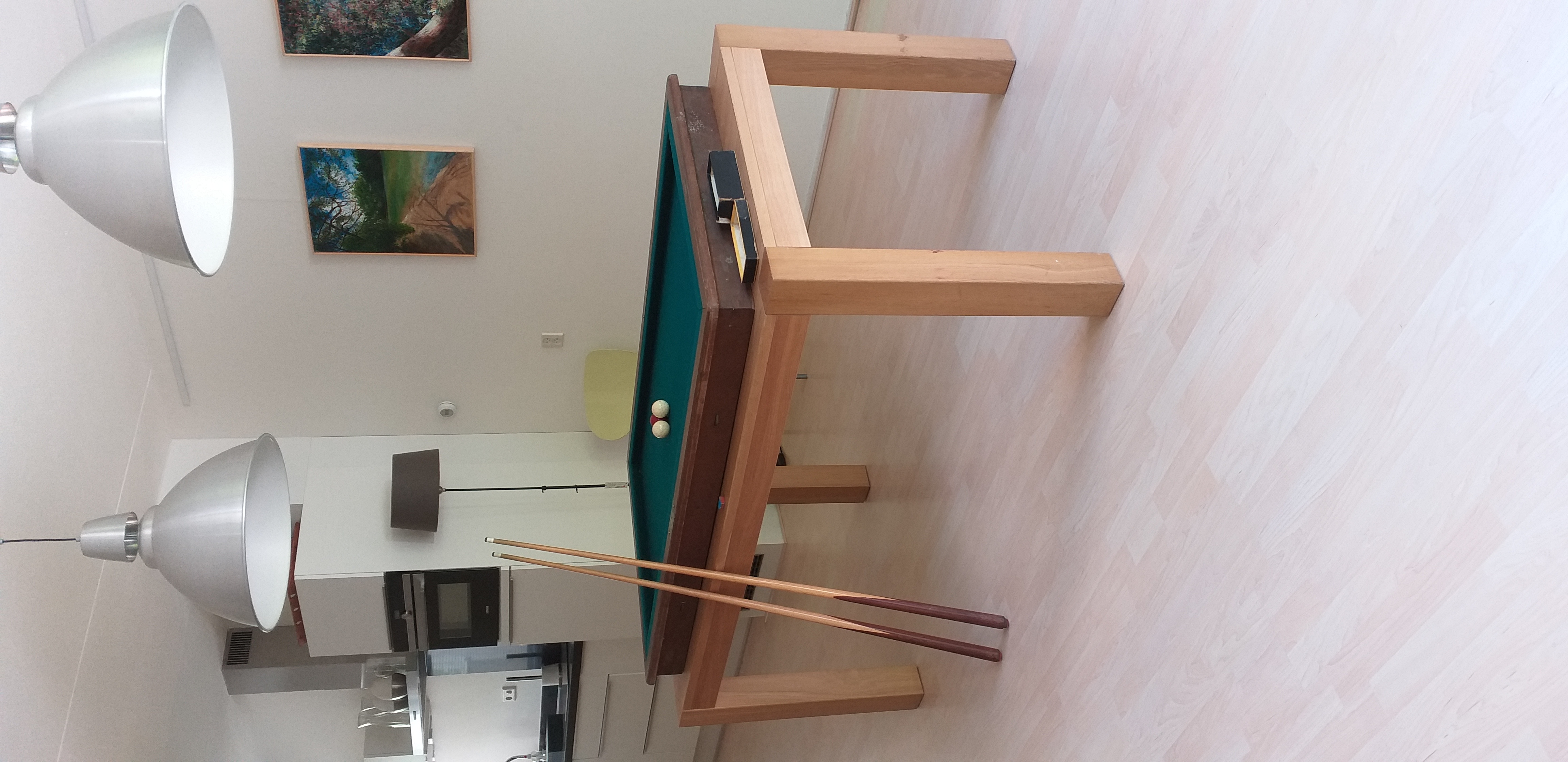 Van een wijkgenoot kregen we een paar weken geleden dit tafelbiljart cadeau. Het staat voorlopig middenin de wijkkamer zodat er gebiljart kan worden.