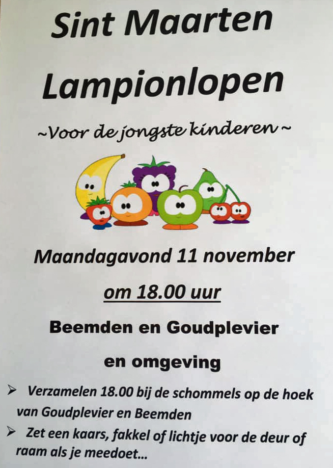 « Alle Evenementen Dit evenement is voorbij. Sint Maarten lampion lopen 11-11-2019 | 18:00 « Koffieochtend Sint Maarten lampion lopen » + Toevoegen aan Google Calendar Gegevens Datum: 11-11-2019 Tijd: 18:00