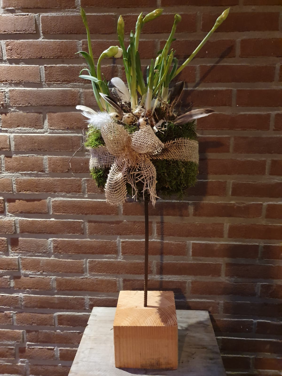 Deze Super-Super-Super leuke workshop bestaat uit een standaard, daarop ga je een halve bol bekleden, en dan leuk opmaken met bolletjes, veertjes, eitjes etc. De bolletjes zullen narcissen zijn i.v.m het voorjaar!