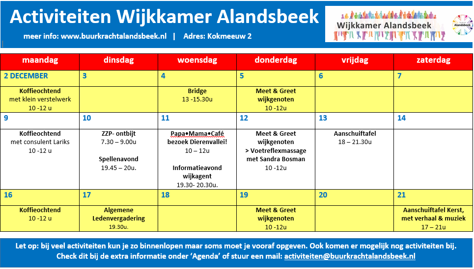 Wijkkamer Alandsbeek | Kokmeeuw 2 | tijd: 10.00 – 12.00 uur