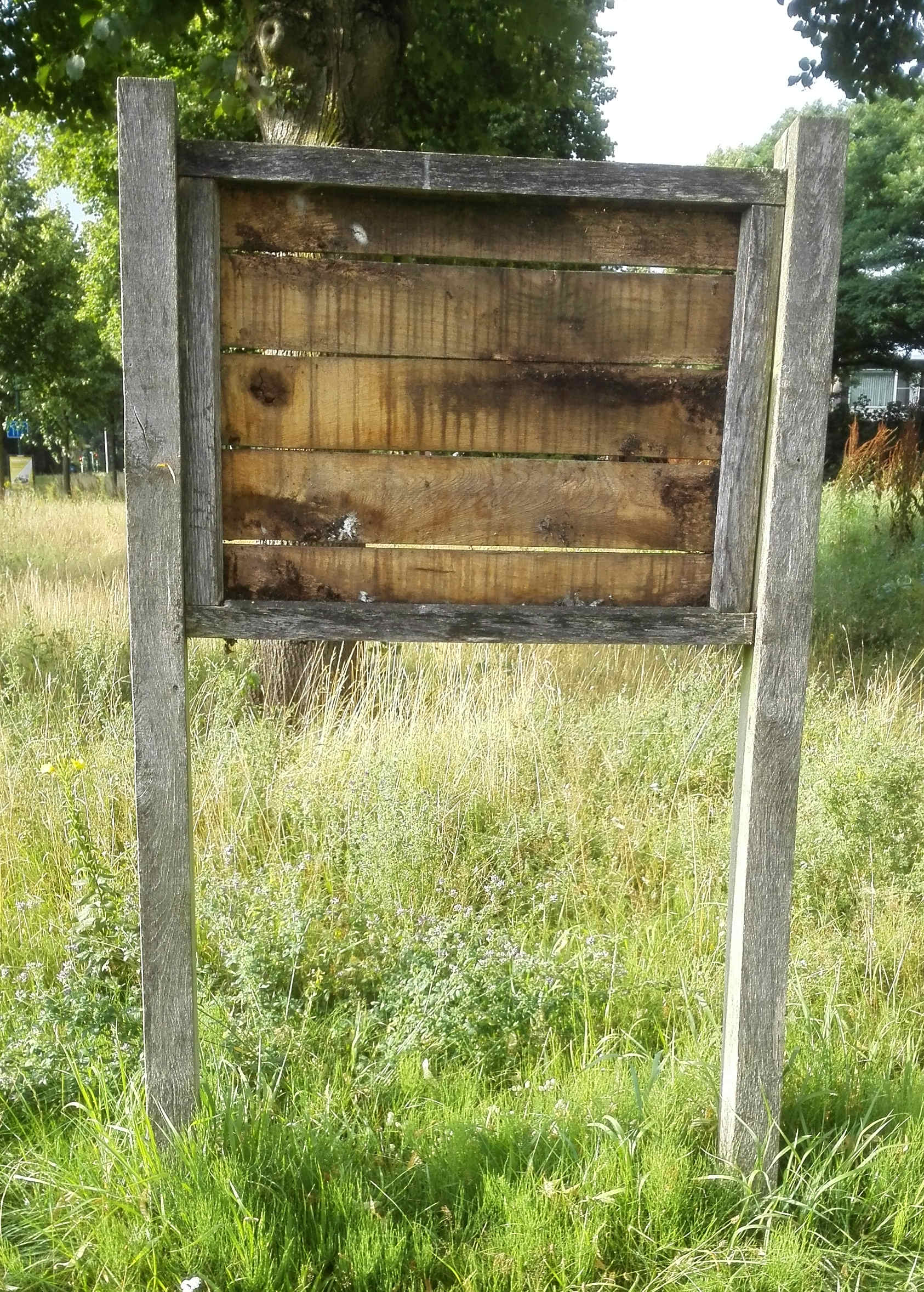 Blijdschap alom! Het verdwenen bord dat aan de Geode stond is terecht. Een oplettende Alandsbeker heeft gezien dat de plaat verzakt in het defecte raamwerk hing. Met Buurkracht Alandsbeek worden nu alle borden nagelopen en voor zover nodig gerestaureerd.