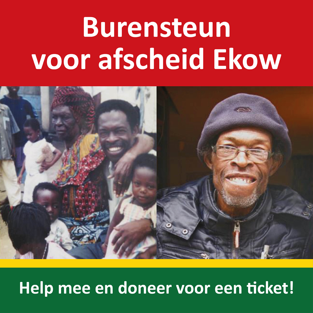 Het is voor de familie van Ekow uit Ghana heel lastig om bij de uitvaart aanwezig te zijn. De reiskosten hiervoor kunnen zij niet opbrengen. Veel mensen kenden Ekow van het voorbijgaan. Toch was de kring rondom hem erg klein. Als buren doen we ons best om zijn zoon Michael over te laten komen voor het afscheid van zijn vader.