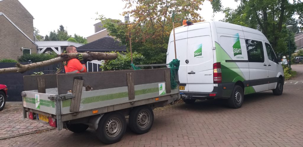 De afgelopen weken kregen we naast hulp van buren ook andere support. Lucienne Meijer van LMcc (communicatie, grafische vormgeving) ontwierp ons naambord. Sight Landscaping hielp de afgelopen week met het zwaardere tuinwerk. En Wester Sierbestrating bracht even tegels met een shovel en stampte de grond aan.